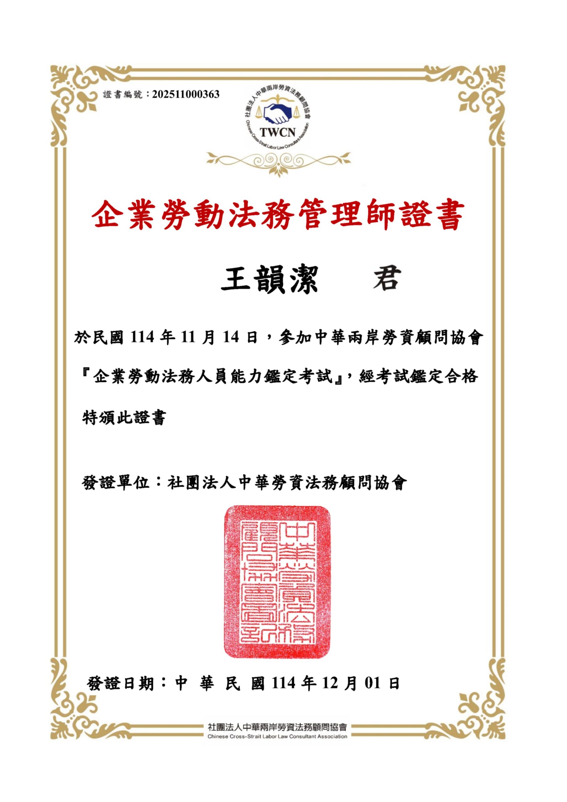 本所負責人王韻潔小姐出生於記帳士世家,從小耳濡目染加上高中、大學皆畢業於會計系,從事本業至今超過20年以上的磨練與學習,於107年取得記帳士證書。